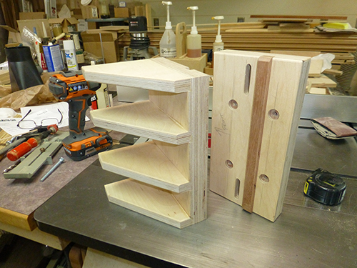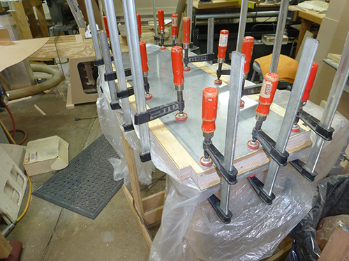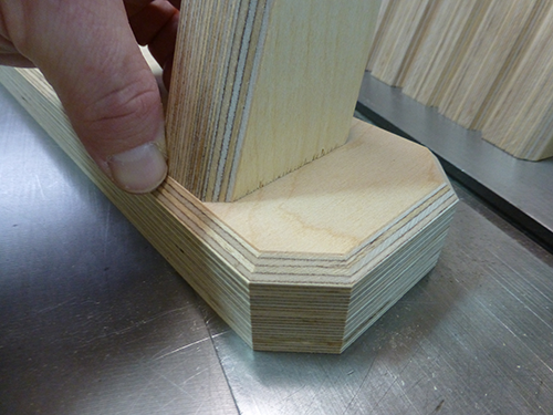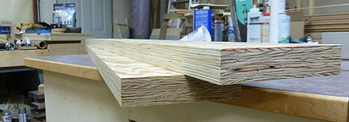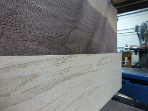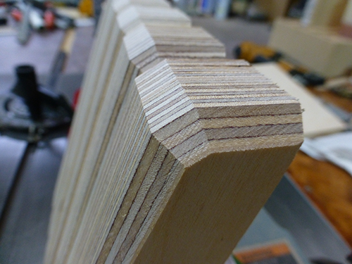 I wanted a sturdy frame to support the larger tables. Rather than using constuction lumber or laminating plywood, I purchased two 1-3/4" x 7-1/4" LVL's. I had never used LVL's before, and was surprised at how "rough" they were. But I ran them through my planer to clean them up, and they cleaned up nicely. But LVL's are very difficult to prep for a high quality finish. If I were to do it over again, I would have made the frame from laminated baltic birch plywood, probably 3 layers of 5/8 or 16mm.