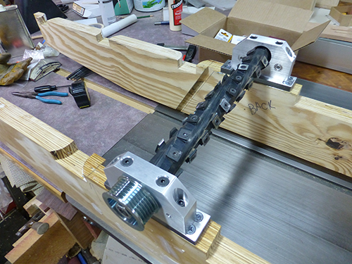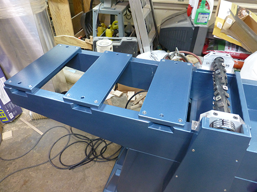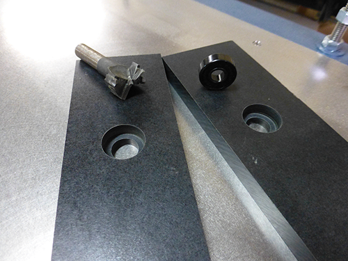 After machining them flat, I chamfered the outside corners, notched them to fit around the bearing mounts, and beveled the bottom to fit around the cutterhead.