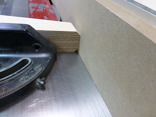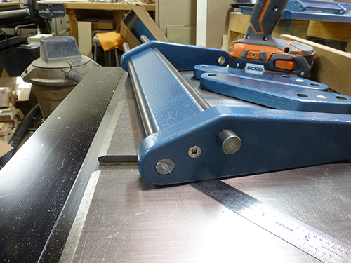 I used a cutoff sled on my table saw to cut the notches on the outfeed side for the table height adjusting screws.