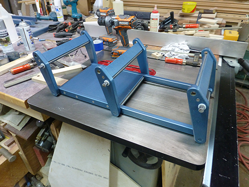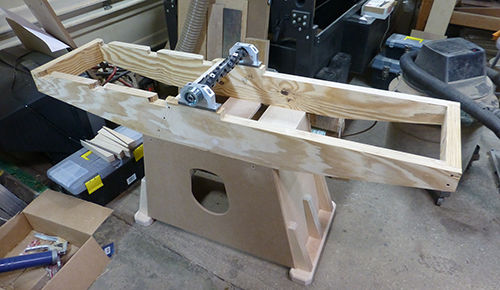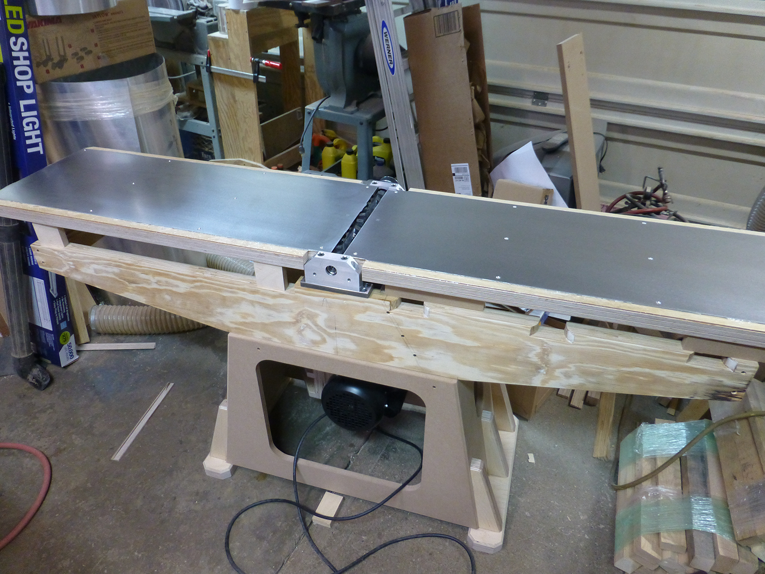 Once the frame was in place, I added the mounting rails for the outfeed table, and then set the outfeed table in place.