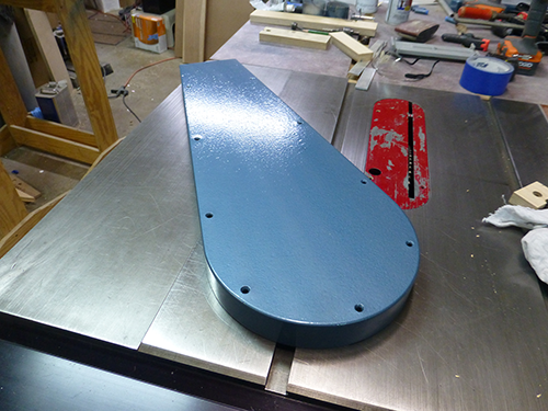 All of the baltic birch parts on this machine had their edges sealed with epoxy, and were basically finished with 2 double coats of paint. The first 2 coats are done together, about 20 minutes apart, then allowed to dry overnight. The next day, they get a light sanding, followed by a light to medium coat. After another 20 minutes, one final heavy coat.