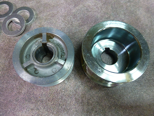 Both required hand filing a slot for the keyway into them. These gave me a ratio of roughly 2.5x, which should give a cutterhead speed of ~8700 rpm.