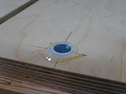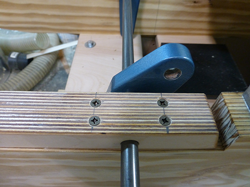 After the epoxy cured, I trimmed the block to final size. I added a chamfer at the router table, and drilled and countersunk the mounting holes. I used t-nuts to mount the block in the frame.