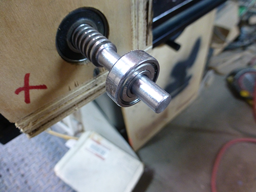 After adding my aluminum tubes, I used the same spacers to drill the rail mounting holes into the frame. The rails are removeable, mounted with the same 3" long 1/4-20 screws that I used to mount the bearing block mounts. These are machine screws, driven into untapped 3/16" holes in the frame.