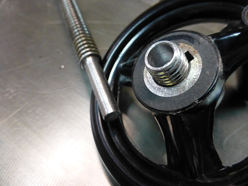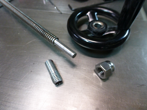Rather than make my own crude handwheel, I picked one up for $5 from China via Ebay. It had a 12mm bore, and I now had an 8mm shaft I need to mount it to.