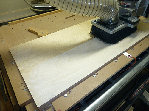 Before assembling the frame, I used the CNC to route a pocket which would later accept the bearing mounts for the infeed table lifting screw.